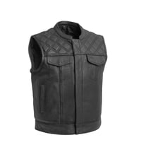 Club style with one inch collar, covered snaps and hidden cropped center zipper